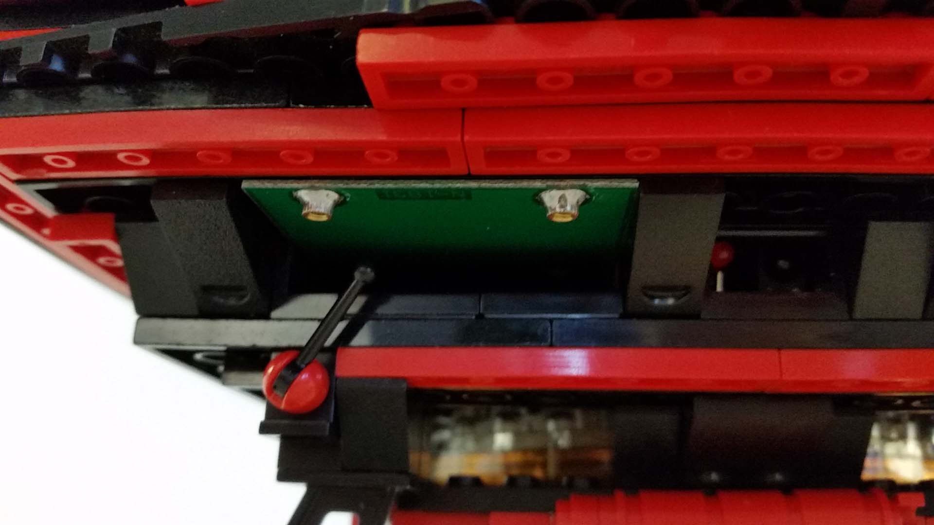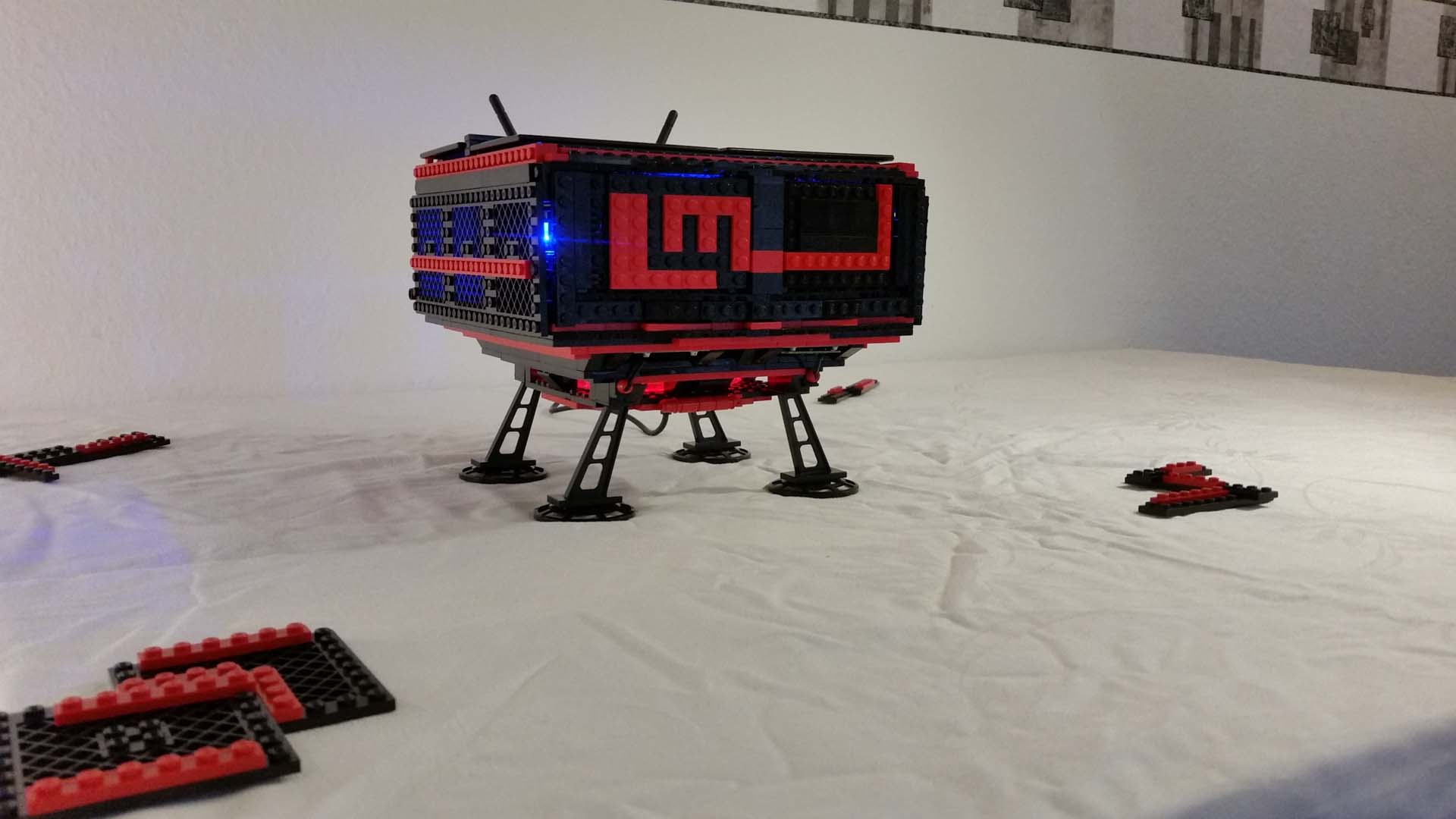 Ebenfalls über das Drücken auf einen Legostein wird das System eingeschaltet. Zur Fernsteuerung ist ein IR Empfänger eingebaut.