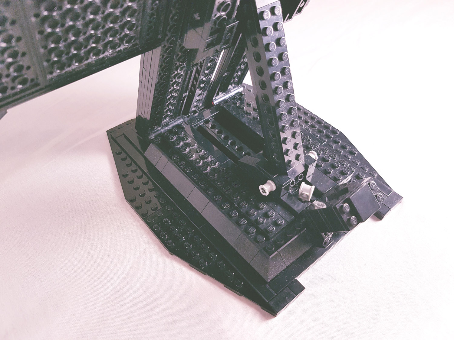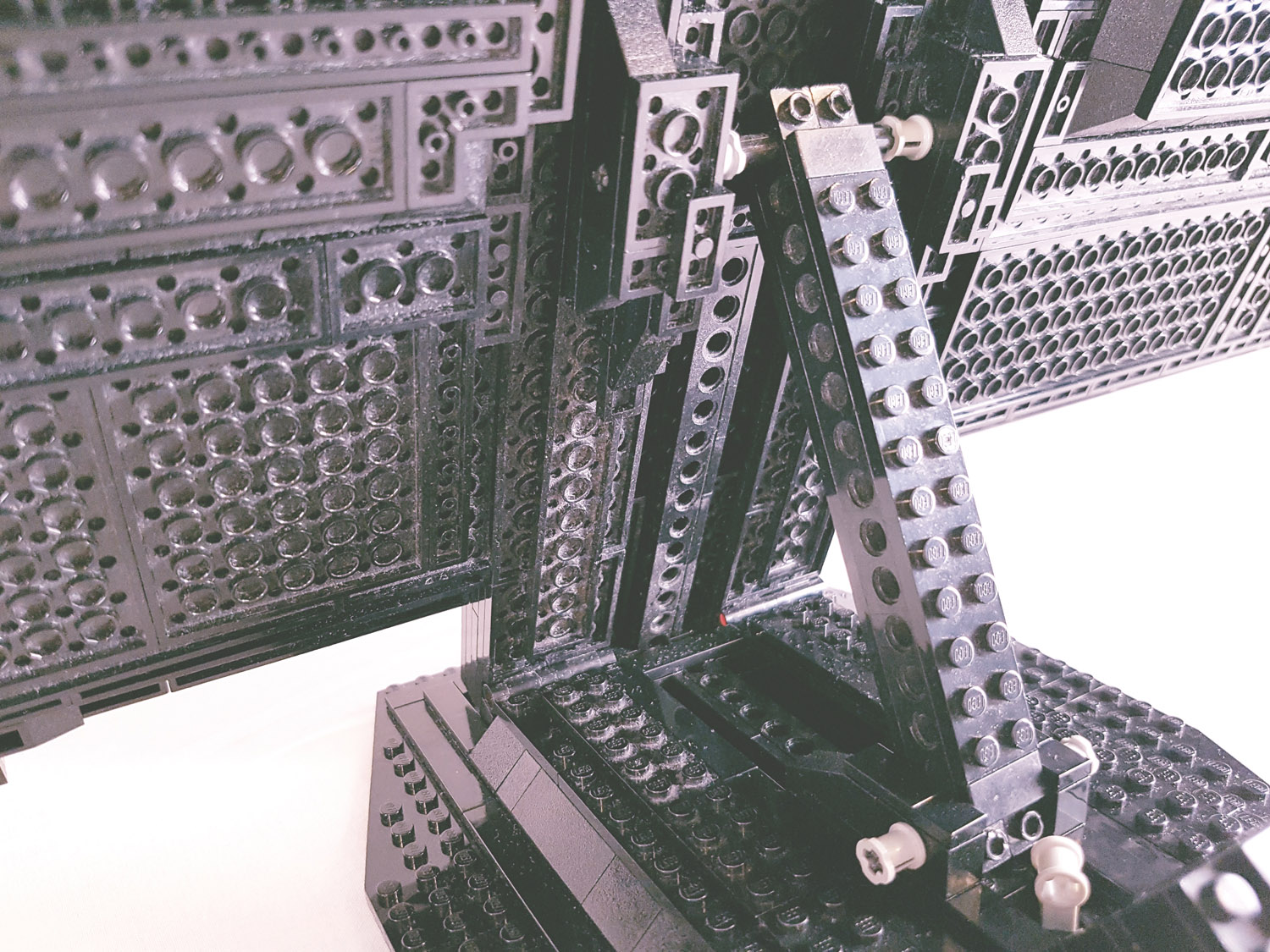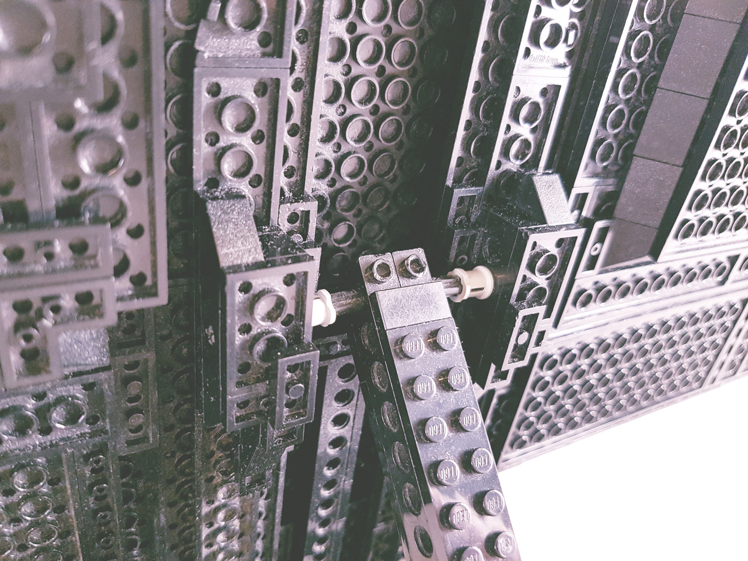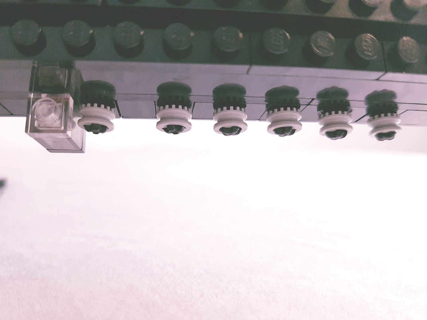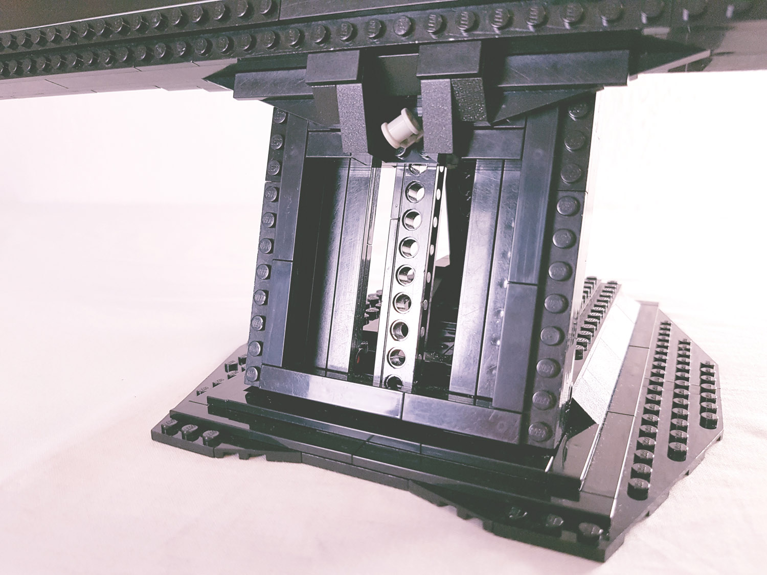 LM Screen ist ein funktionierender Bildschirm in einem Gehäuse aus LEGO Steinen. Er basiert auf einem alten 24″ LCD-Monitor von Acer, dessen Kunststoffgehäuse nach einem Sturz eingerissen war. Der Bildschirm kann in Höhe und Neigungswinkel verstellt werden. Zum Verstellen der Höhe, wird er auf einer gelochten Schiene nach oben oder unten geschoben und mit einem kleinen Bolzen in seiner Position gehalten. Zum Verstellen der Neigung wird eine Stützstange auf einer, ebenfalls gelochten, horizontalen Schiene verschoben und genauso mit einem kleinen Bolzen fixiert. Die OSD-Tasten werden durch Drücken auf kleine LEGO Stangen betätigt und die Status-LED leuchtet durch einen transparenten Stein. Die Anschlüsse, die sich am originalen Bildschirm noch auf der rechten und linken Seite befanden, wurden beim LEGO Monitor in die Mitte gelegt um sie weniger auffällig, hinter dem Standfuß verlaufen zu lassen. Hinten am Standfuß ist außerdem eine Kabelführung verbaut. Um den Stromanschluss zu verlegen, wurde ein Verlängerungskabel verwendet. Durch das schwere Netzteil auf der rechten Seite, musste auf der linken Seite ein Gewicht verbaut werden, um einen gleichmäßigen horizontalen Stand des Bildschirms zu ermöglichen.