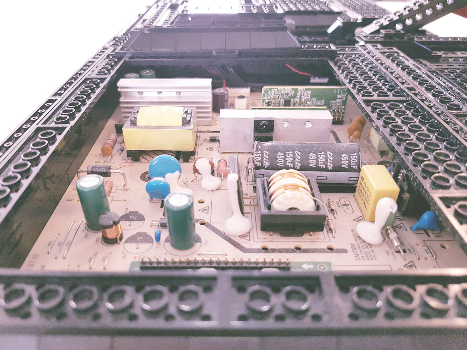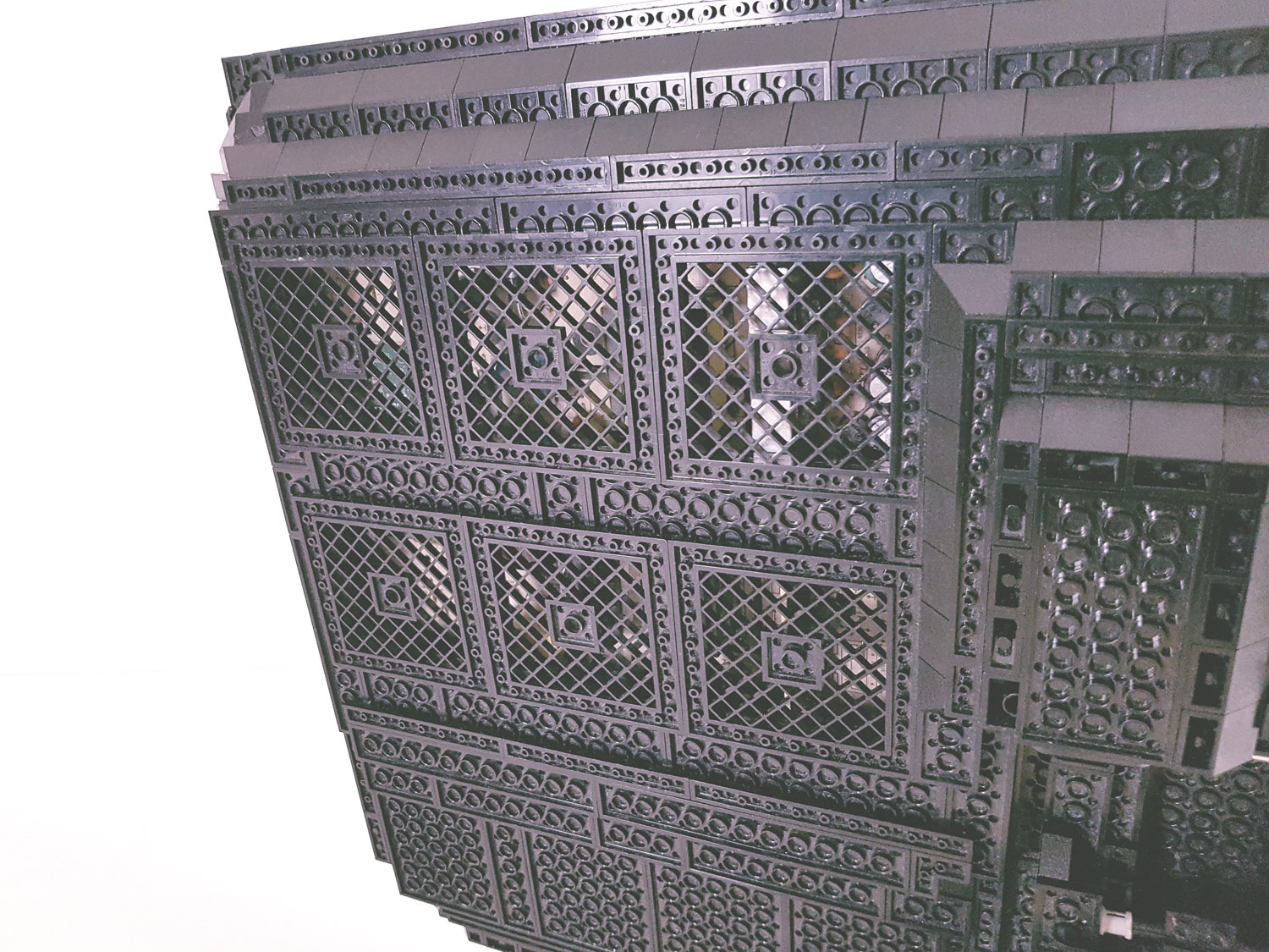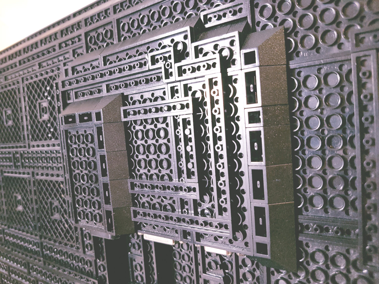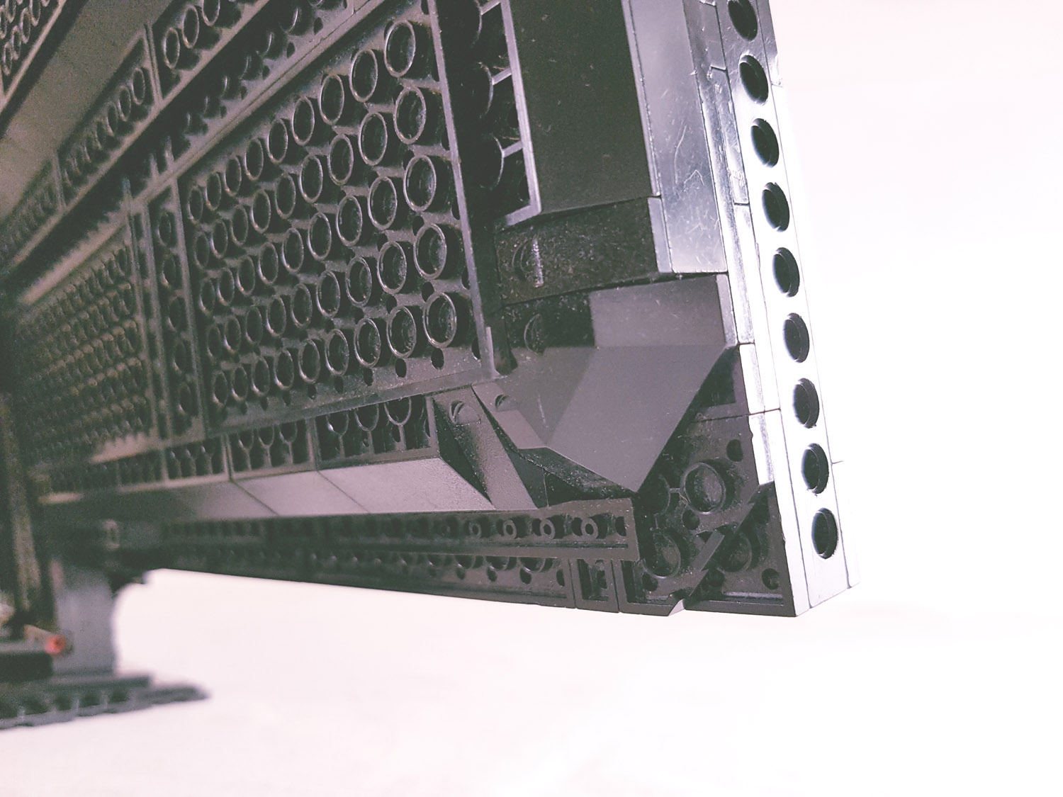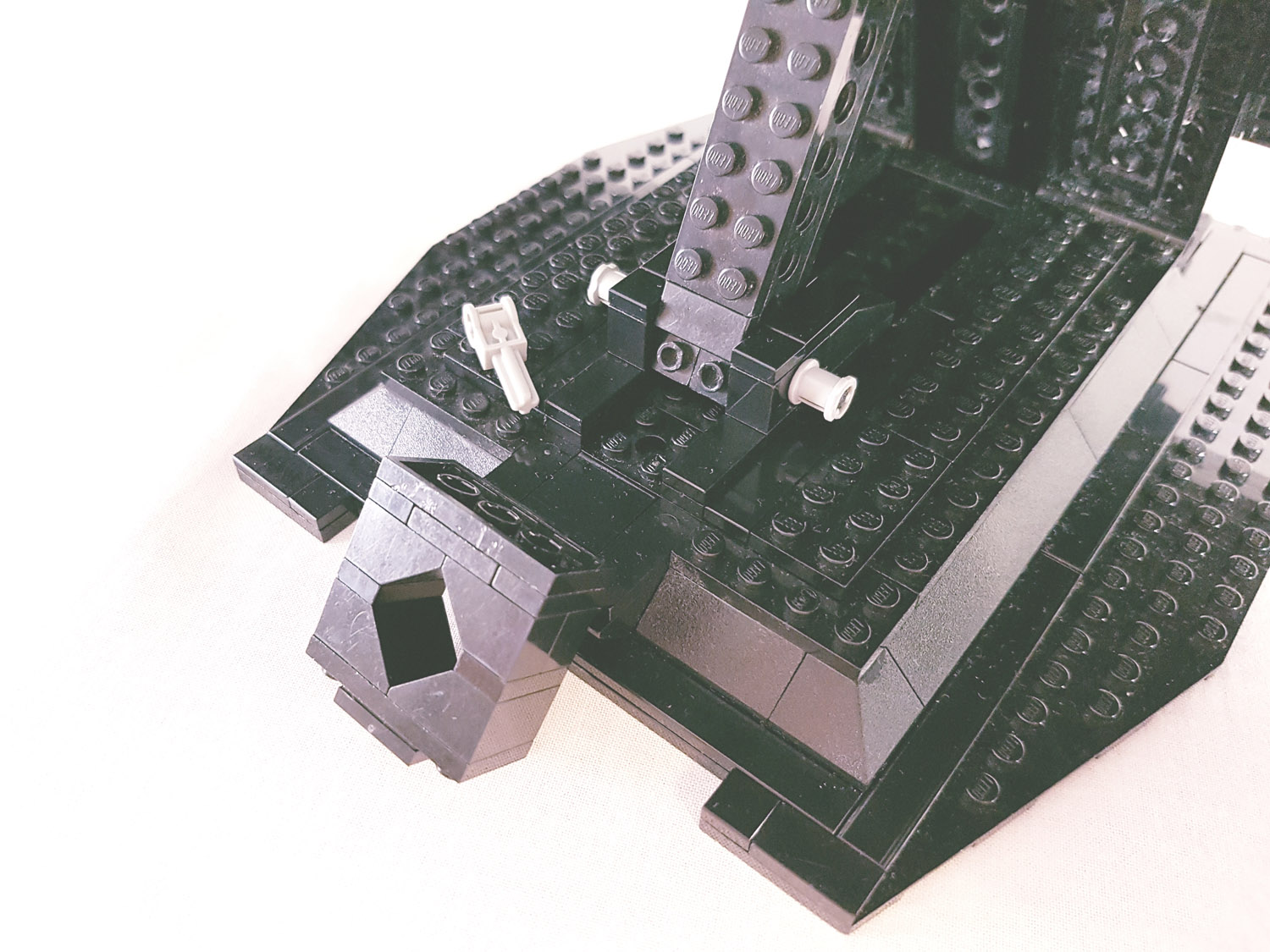 LM Screen ist ein funktionierender Bildschirm in einem Gehäuse aus LEGO Steinen. Er basiert auf einem alten 24″ LCD-Monitor von Acer, dessen Kunststoffgehäuse nach einem Sturz eingerissen war. Der Bildschirm kann in Höhe und Neigungswinkel verstellt werden. Zum Verstellen der Höhe, wird er auf einer gelochten Schiene nach oben oder unten geschoben und mit einem kleinen Bolzen in seiner Position gehalten. Zum Verstellen der Neigung wird eine Stützstange auf einer, ebenfalls gelochten, horizontalen Schiene verschoben und genauso mit einem kleinen Bolzen fixiert. Die OSD-Tasten werden durch Drücken auf kleine LEGO Stangen betätigt und die Status-LED leuchtet durch einen transparenten Stein. Die Anschlüsse, die sich am originalen Bildschirm noch auf der rechten und linken Seite befanden, wurden beim LEGO Monitor in die Mitte gelegt um sie weniger auffällig, hinter dem Standfuß verlaufen zu lassen. Hinten am Standfuß ist außerdem eine Kabelführung verbaut. Um den Stromanschluss zu verlegen, wurde ein Verlängerungskabel verwendet. Durch das schwere Netzteil auf der rechten Seite, musste auf der linken Seite ein Gewicht verbaut werden, um einen gleichmäßigen horizontalen Stand des Bildschirms zu ermöglichen.