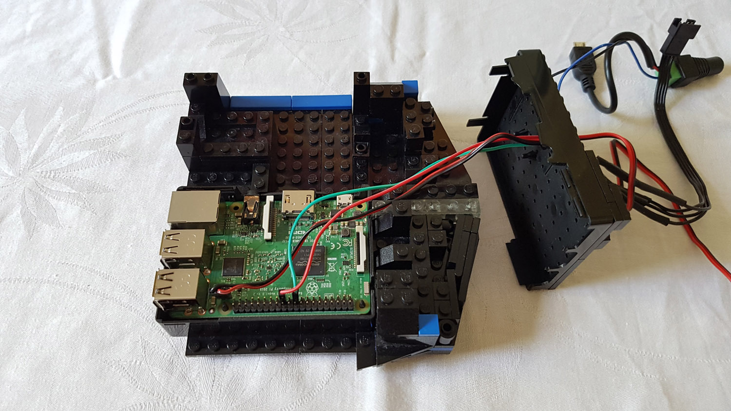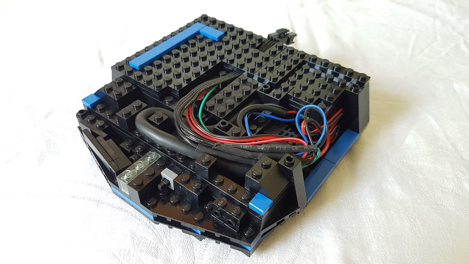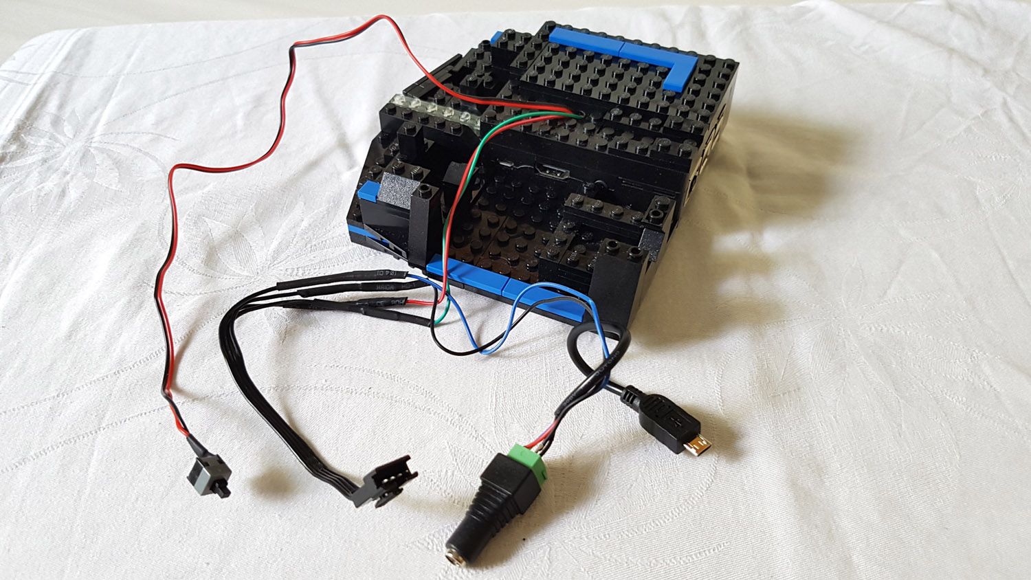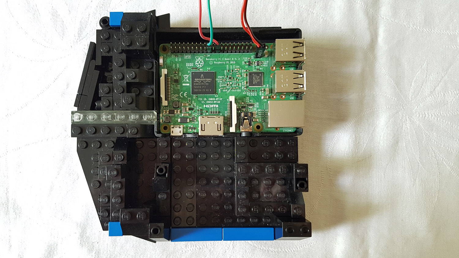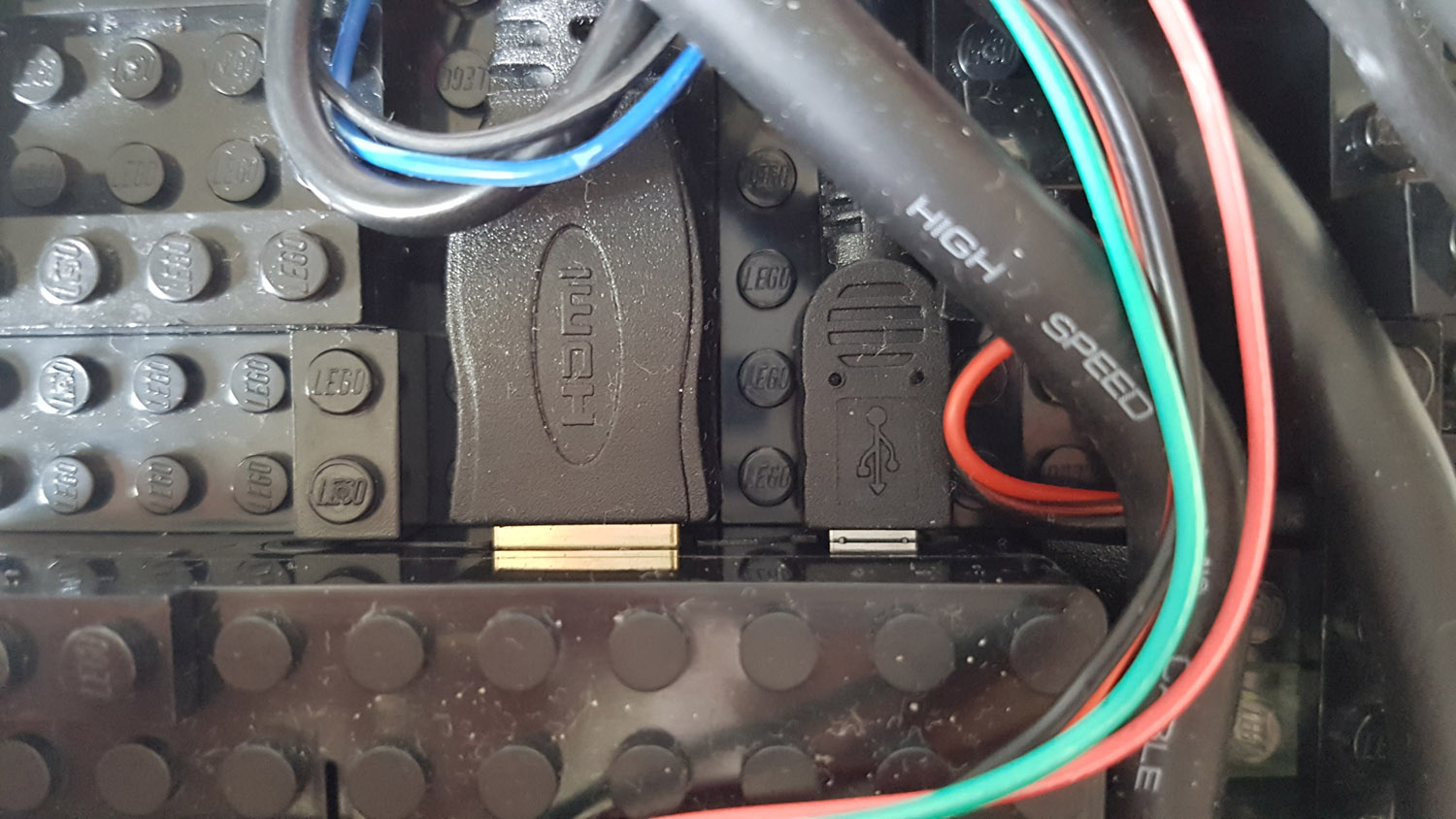 LM v4 basiert auf dem Raspberry Pi 3 Model B, der in dem LEGO-kompatiblen Gehäuse Pi-Blox von Multicomp steckt. Der Raspberry Pi kann mittels OSMC (Kodi) Filme und Serien streamen und LED Streifen über Hyperion als Ambilight ansteuern. Letztere können einfach über den passenden Anschluss auf der Rückseite verbunden werden. Der am Rasperry Pi seitlich gelegene HDMI Anschluss wurde per Verlängerung ebenfalls auf die Rückseite verlegt. An den rückseitigen Stromanschluss, wird ein 5V Netzteil angeschlossen, das Raspberry Pi und die verbundenen LED Streifen versorgen kann. Die Status LEDs des Raspberry Pi, sind durch einen transparenten Stein von außen sichtbar und vorne betätigt das Drücken auf einen Legostein, den Power/Reset Taster.