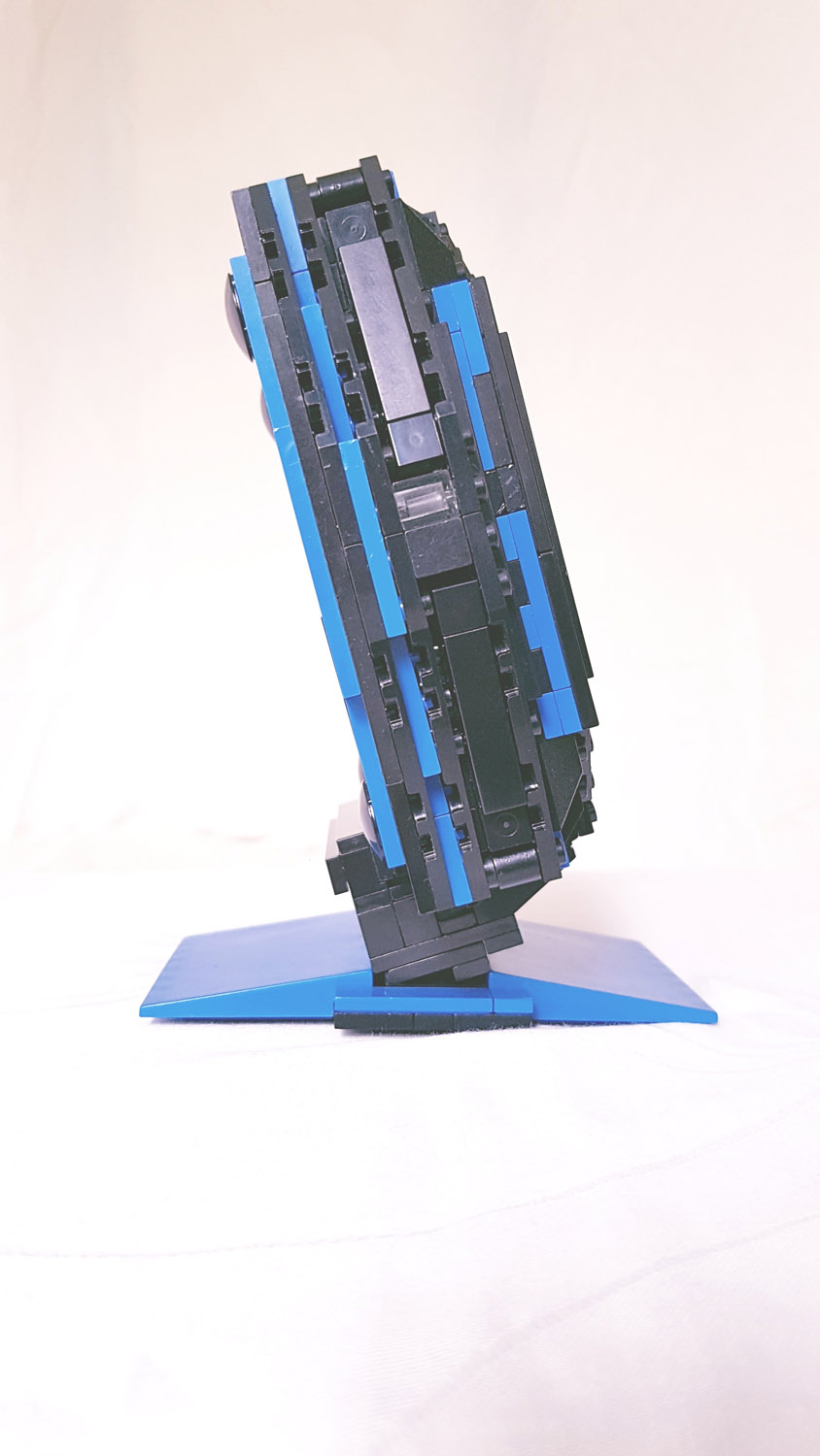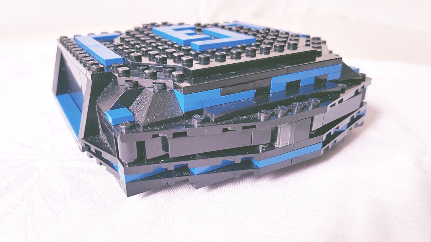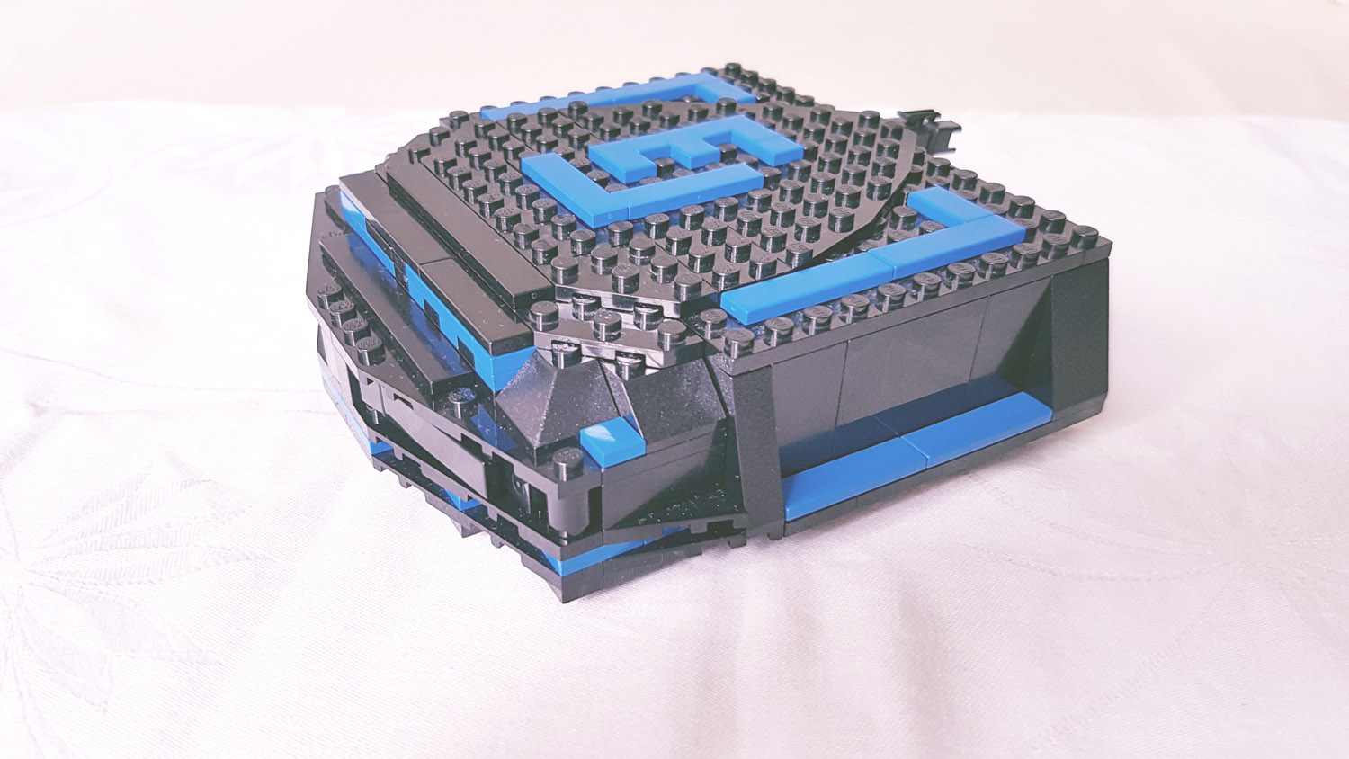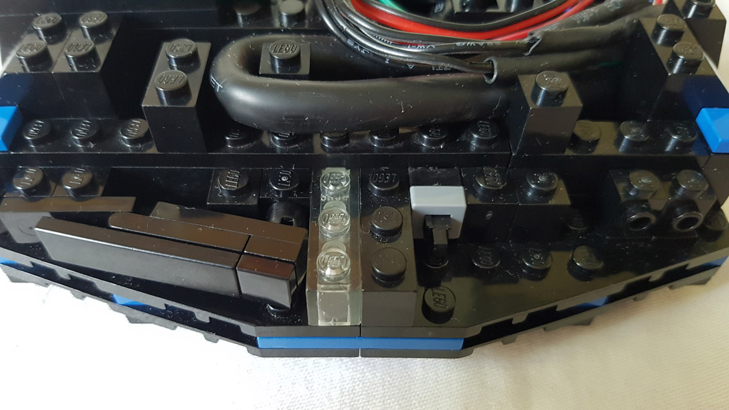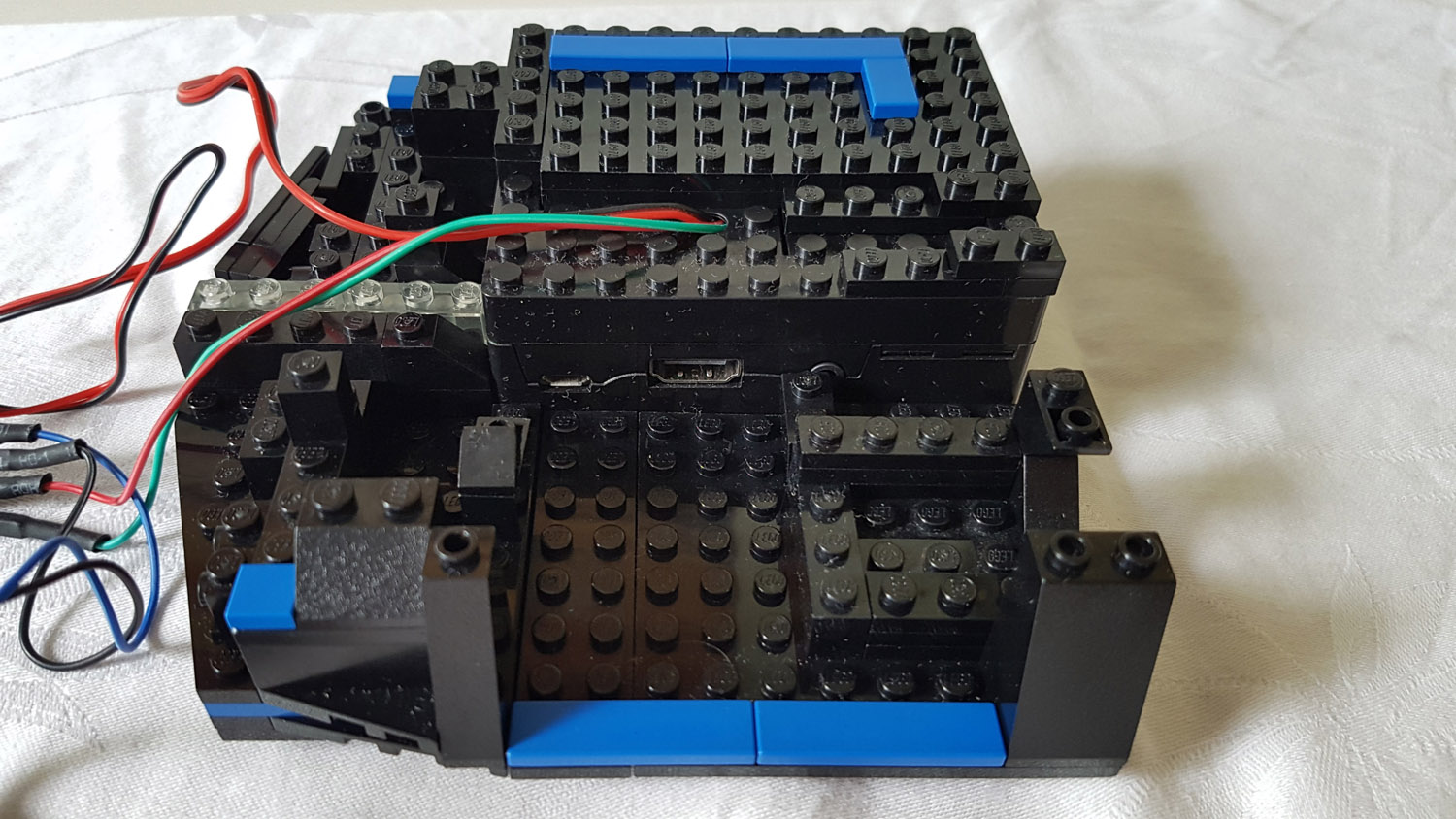 LM v4 basiert auf dem Raspberry Pi 3 Model B, der in dem LEGO-kompatiblen Gehäuse Pi-Blox von Multicomp steckt. Der Raspberry Pi kann mittels OSMC (Kodi) Filme und Serien streamen und LED Streifen über Hyperion als Ambilight ansteuern. Letztere können einfach über den passenden Anschluss auf der Rückseite verbunden werden. Der am Rasperry Pi seitlich gelegene HDMI Anschluss wurde per Verlängerung ebenfalls auf die Rückseite verlegt. An den rückseitigen Stromanschluss, wird ein 5V Netzteil angeschlossen, das Raspberry Pi und die verbundenen LED Streifen versorgen kann. Die Status LEDs des Raspberry Pi, sind durch einen transparenten Stein von außen sichtbar und vorne betätigt das Drücken auf einen Legostein, den Power/Reset Taster.